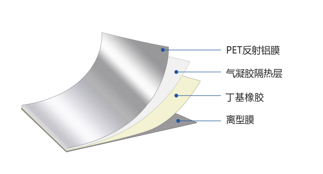 真正的气凝胶防水隔热卷材结构科学严谨,依次为:铝箔层—气凝胶隔热层—丁基胶层—离型膜,四大结构协同发力,高效隔热+强力防水双保障,使用寿命可达数十年,是传统卷材的3倍以上。