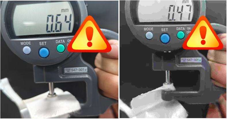 而造假者常在厚度上耍花样,比如标榜总厚度达到0.64mm,实则其中0.47mm是廉价的无纺布,仅用0.17mm的廉价树脂乳液涂层冒充气凝胶层,这种“注水”的厚度,根本起不到任何隔热作用。